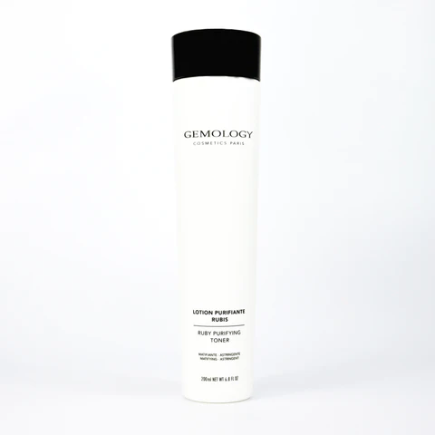 Description: The ruby purifying toner helps regenerate the skin's pH barrier, unifies the complexion and reduces oily shine. The skin is revived, smooth and soft. The ruby purifying toner is a must-have for combination to oily skins to purify and bring radiance while decreasing the sebum production. Skin is matifies, skin texture is refined and spots erased.